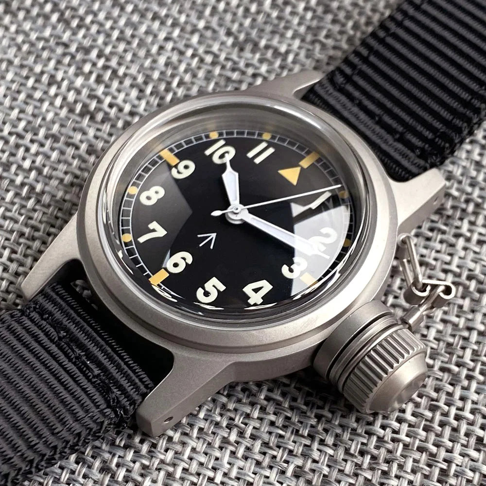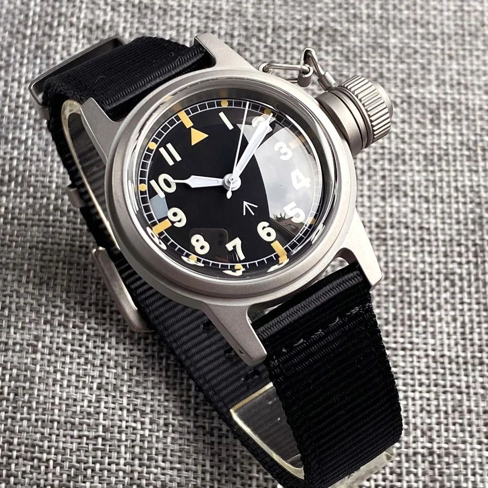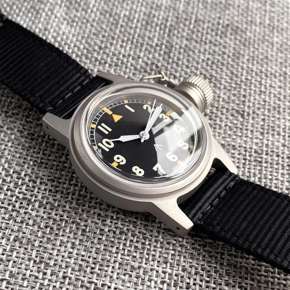Encased in a compact 36mm stainless steel case with a bold screwdown crown, this timepiece blends functional aesthetics with military grit. The domed sapphire crystal enhances clarity, while the luminous hands and indices ensure perfect readability even in the darkest hours. With 200m water resistance and a tactical nylon strap, it is as resilient in the field as it is in everyday wear.