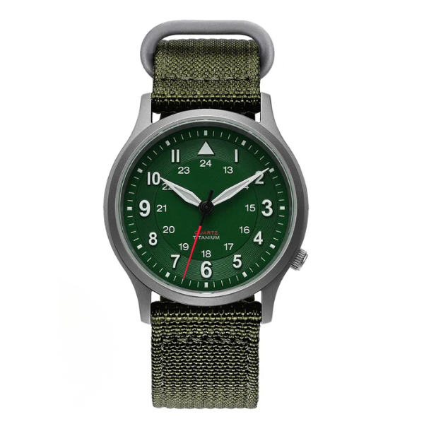 Inspired by the utility watches worn by WWII pilots and ground crew, the P-51 Falcon Scout embodies simplicity, clarity, and field-ready resilience. With its ultra-lightweight titanium case and clean 24-hour dial, this timepiece is designed for those who value precision without distraction.