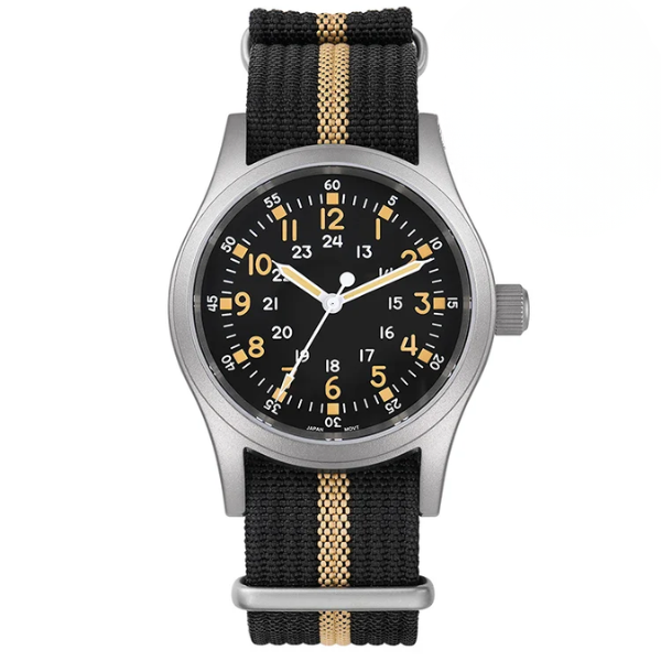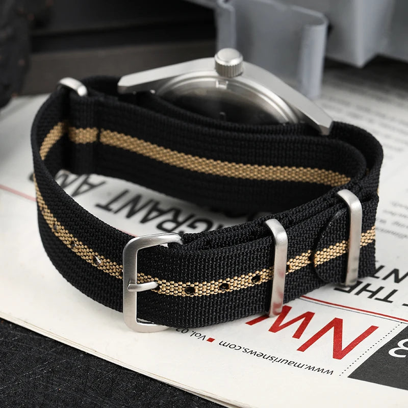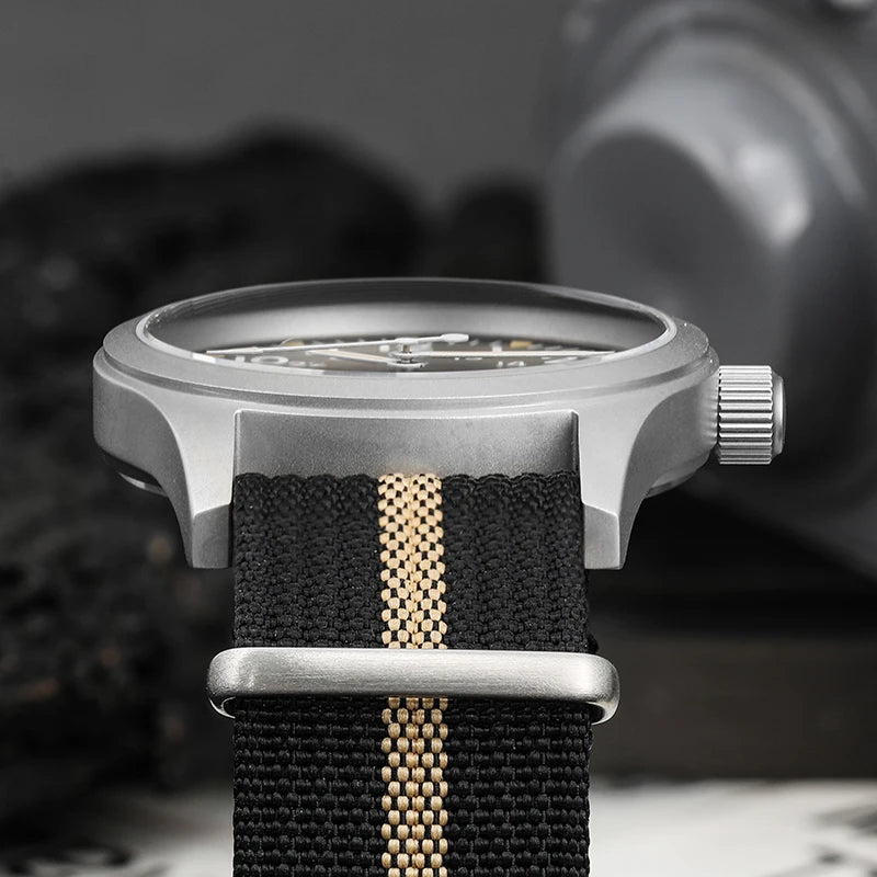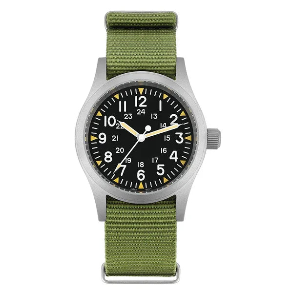 Layout inspired by the P-51’s cockpit gauges for high legibility. - Tactical Leather or Nylon Strap